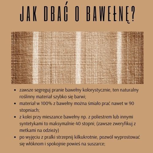 Bawełnę natomiast można śmiało nazwać materiałem dla ludzi co to na praniu materiałów mało się znają. Jak jej nie wypierzesz będzie ok. Najczęściej bawełna na metkach pokazuje do 60 stopni prania, jednak ja widziałam i wyższe temperatury (90 stopni). Uważać natomiast trzeba na kolory, bawełna dość szybko barwi jak i pochłania kolory. Pamiętajmy więc o segregacji przed praniem oraz odwróceniem na lewą stronę. Co do suszenia nie ma większych zastosowań, spokojnie bawełniane koszulki można rozwiesić na domowej suszarce lub suszyć w suszarce bębnowej.