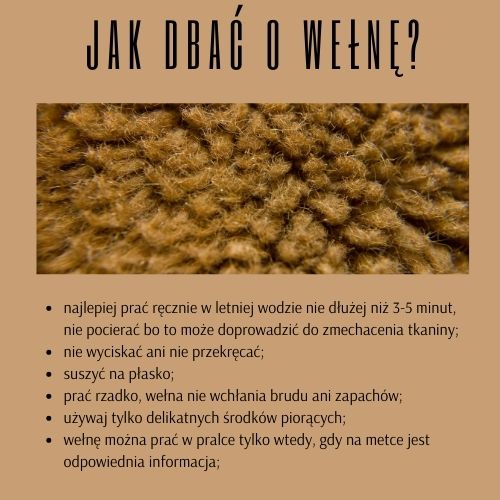 Nie polecam prać wełny w pralce, chyba że mamy specjalny program na swoim urządzeniu do tego typu tkanin. Wełna to włókno naturalne, które nie wchłania zapachów ani brudu tak szybko jak inne materiały. Jeśli chcesz by wełna zachowała swoją miękkość na długie lata pierz ją bardzo, ale to bardzo rzadko nie dłużej niż 3-5 minut, unikaj pocierania, ponieważ możesz uszkodzić włókno tkaniny, unikaj skręcania i wyciskania oraz używaj jak najdelikatniejszych detergentów. Wełnę najlepiej jest suszyć na płasko – unikniesz rozciągnięcia materiału.
