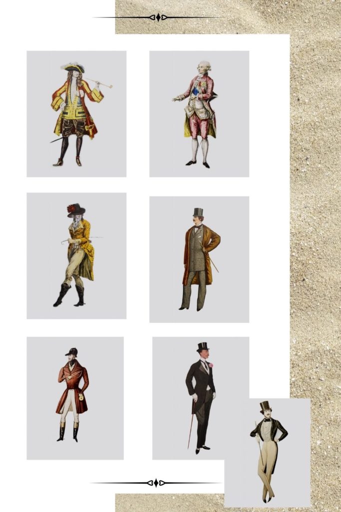 Trzyczęściowy komplet odzieżowy składający się z marynarki, kamizelki i spodni z tego samego materiału stał się na początku 1906 roku kanonem (garniturem), który poddawany był modyfikacjom w postaci wymiany kamizelki bądź spodni na kontrastujące kolory.