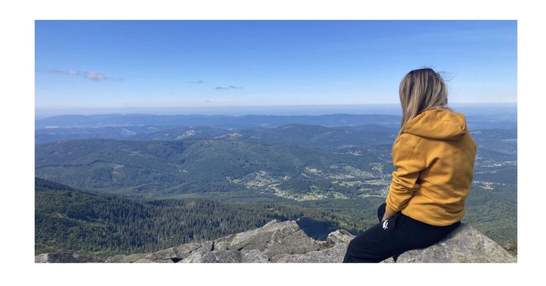 Jako, że to mój pierwszy zdobyty pieszo szczyt w Polsce, nie miałam zupełnie pojęcia co mnie czeka, tak jak wtedy, gdy pierwszy raz wsiadałam do samolotu, czułam podekscytowanie, ciekawość i chęć przygody. Niestety dość szybko, bo już po około 10 minutach od wejścia na szlak zdałam sobie sprawę, że łatwo nie będzie, jeśli ma być pięknie. Szlak czerwony okazał się, tak jak i sama góra złożony z kamieni, przy którym dobre buty to podstawa. Stąpać po kamieniach, gdzie w każdej chwili stopa może się poślizgnąć, wykrzywić itp., to nie lada wyzwanie dla obuwia. Wejście na szczyt okazało się jednak dużo prostsze niż zejście. Dla mnie osobiście zejście było dużo bardziej wymagające, zwłaszcza dla moich kolan, ciągłe schodzenie po kamiennych schodach w dół przyprawiało mnie czasem o złość biorącą się oczywiście ze zmęczenia, walczyłam ze sobą, ze swoją głową, słabościami, emocjami, by na koniec sobie podziękować za wytrwałość. Ta podróż była kształtująca dla mojego charakteru jak i sylwetki i wiecie co? Chcę już zdobyć kolejny szczyt!